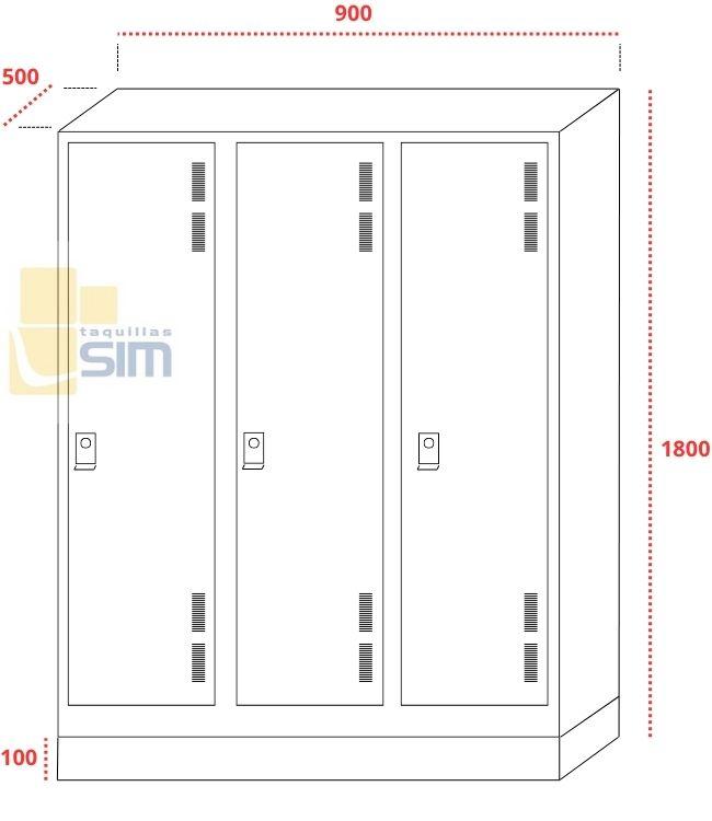 Este ropero metálico de 3 puertas con altillo integrado está diseñado para ofrecer una solución de almacenamiento práctica, higiénica y funcional en vestuarios colectivos. Fabricado en un solo cuerpo soldado con chapa de acero de 0,8 mm y recubrimiento en pintura epoxi anticorrosiva, proporciona gran resistencia al uso diario, la humedad y la limpieza frecuente. Cada compartimento cuenta con puerta reforzada, sistema de ventilación frontal y cerradura con llave, además de barra interior para perchas y toallero en la puerta. El altillo superior permite separar objetos o prendas de uso menos frecuente, optimizando al máximo el espacio disponible. Es ideal para empresas, centros deportivos, colegios o instalaciones industriales que buscan un ropero robusto y bien distribuido.