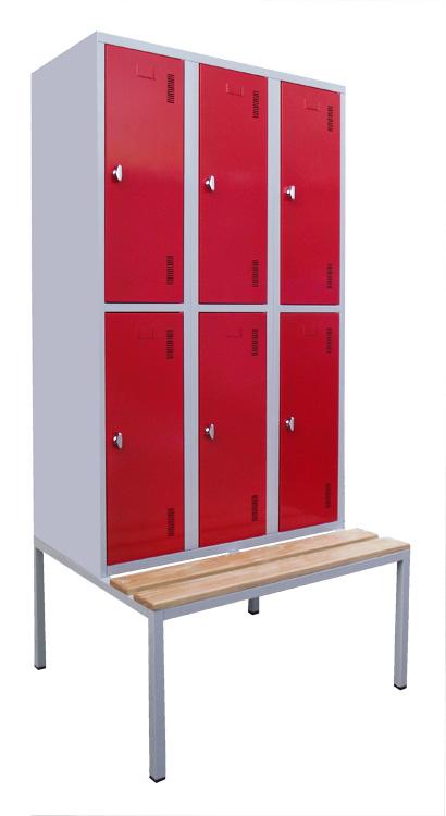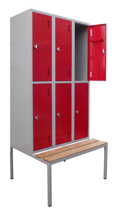 Este modelo de taquilla metálica con 6 puertas y banco integrado ha sido diseñado para ofrecer una solución completa y eficiente en vestuarios de gimnasios, centros deportivos o zonas de trabajo colectivo. Su estructura está fabricada en cuerpo monobloque con chapa de acero de 0,8 mm, protegida con pintura epoxi anticorrosiva, ideal para resistir la humedad, el uso intensivo y los productos de limpieza habituales en instalaciones públicas. Cada compartimento cuenta con puerta reforzada, ventilación frontal y cerradura de llave individual, garantizando privacidad y seguridad. El banco, fijado a la base, está compuesto por lamas de madera barnizada o PVC técnico, que proporcionan una superficie cómoda y duradera para sentarse. Esta solución es perfecta para optimizar el orden en espacios de alto tránsito sin sacrificar comodidad ni robustez.