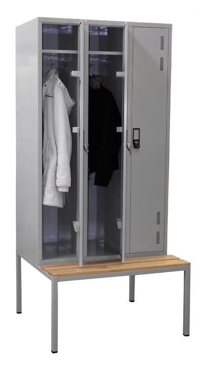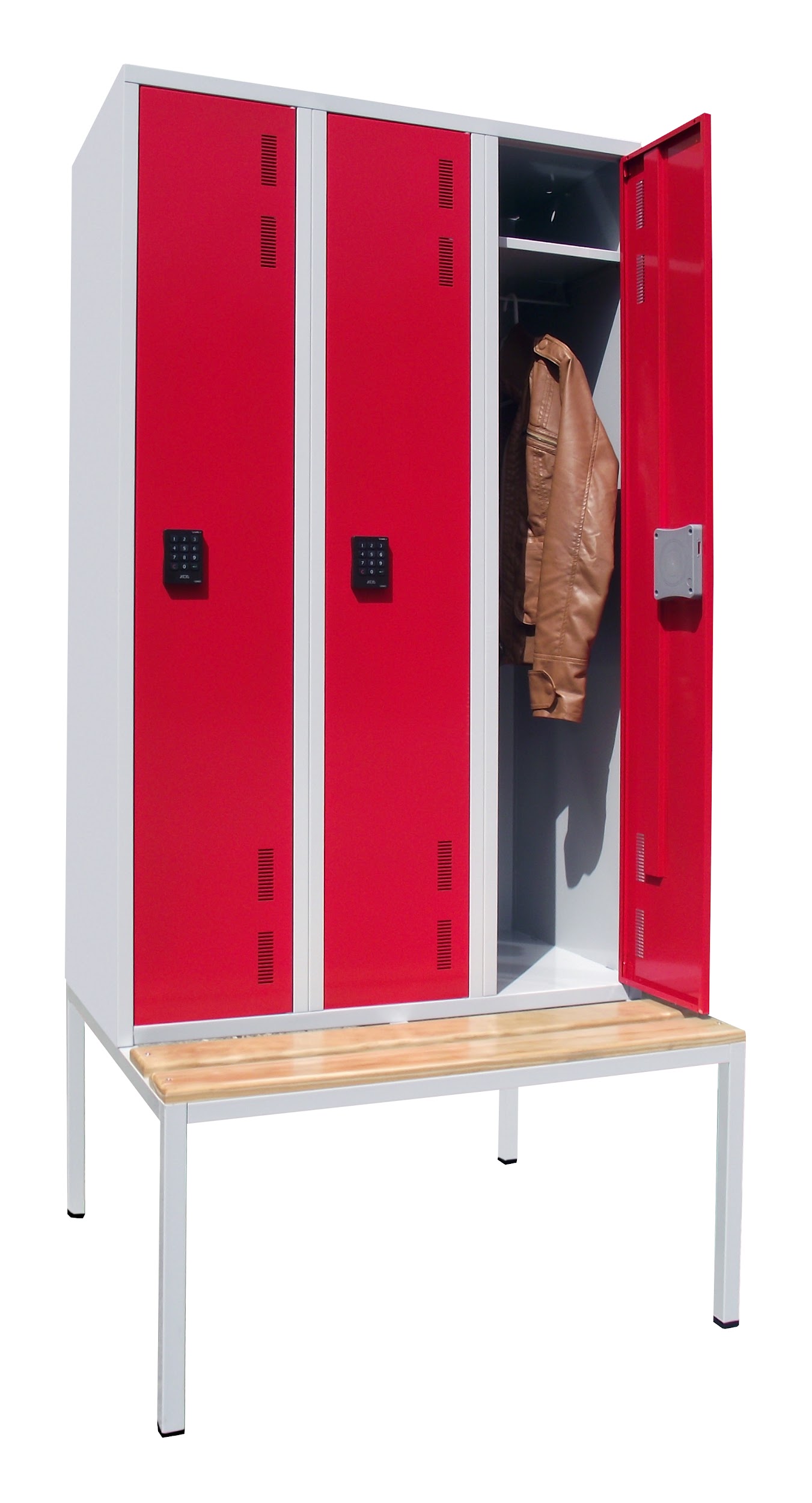 Locker de triple compartimento con asiento incorporado para usuarios exigentes